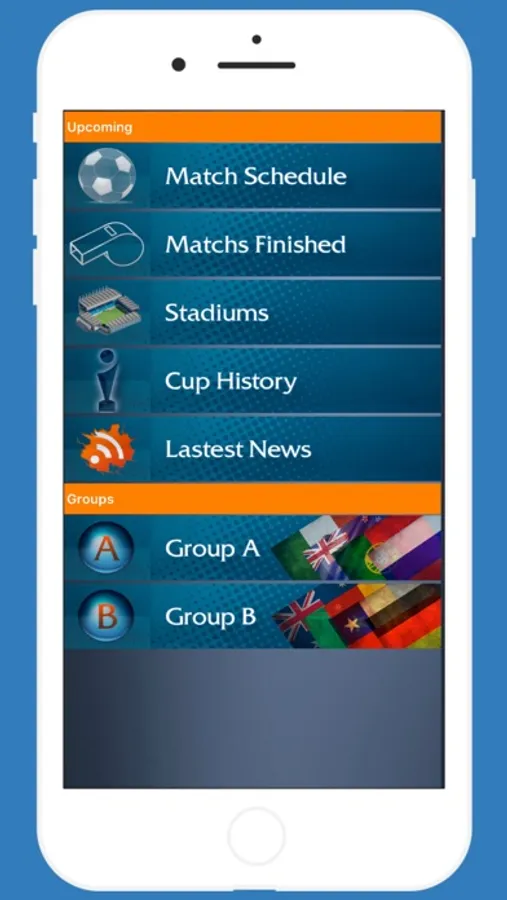 In our groups section, you will see scores of each team, games played, goals for and goals against, and when is the next match that will be played in that group.