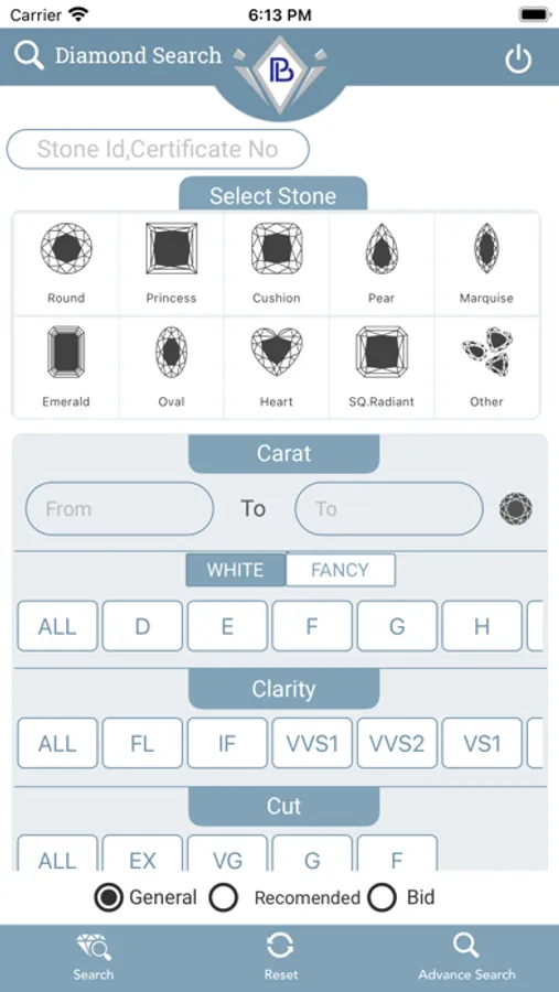 - Specific Search of the diamond you desire.
