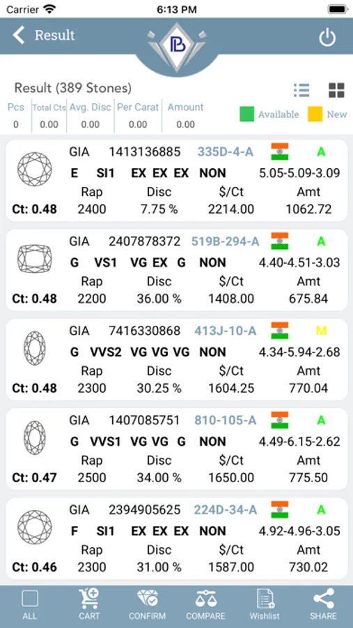 - B2B- Get updated stock list along with Certificate, Image and Video of the stone.
