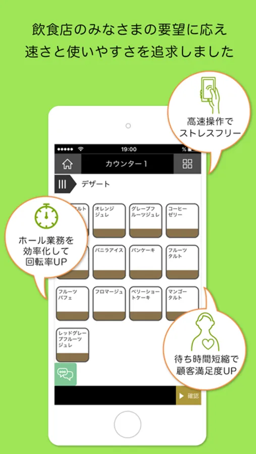 忙しい飲食店舗に最適化さ、お客様を待たせずに素早く利用いただけます。