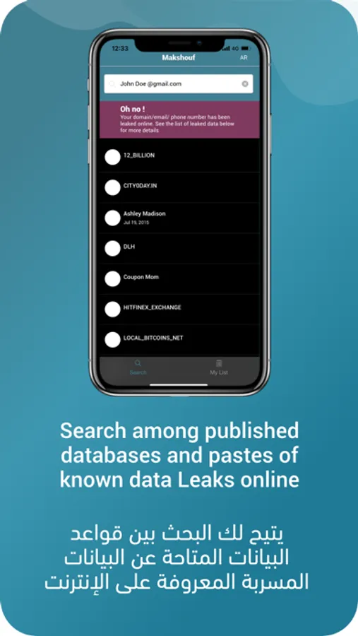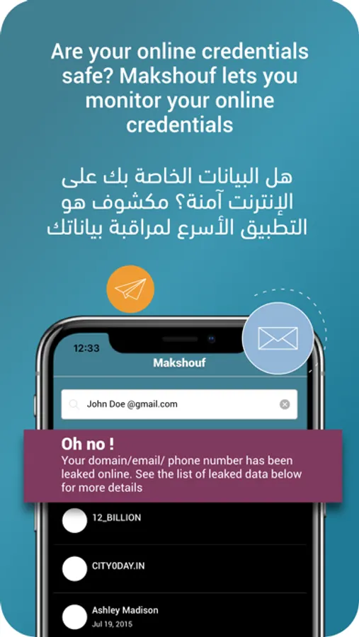 Makshouf lets you monitor your online credentials in case they appear in any known data leaks by searching across several databases of known Leaks.