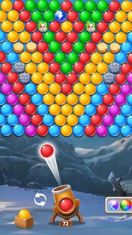 - RESCUE all the doggies trapped in colorful bubbles by shooting