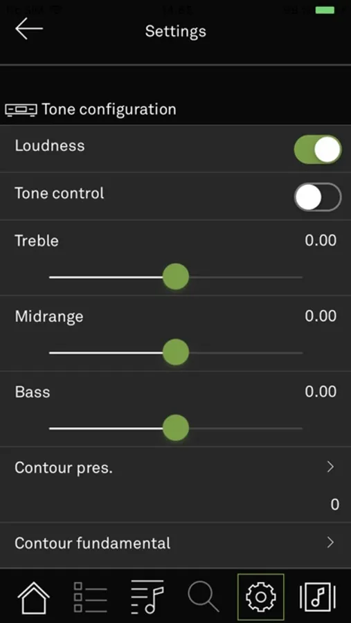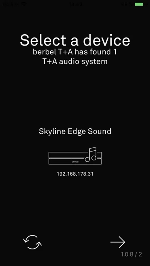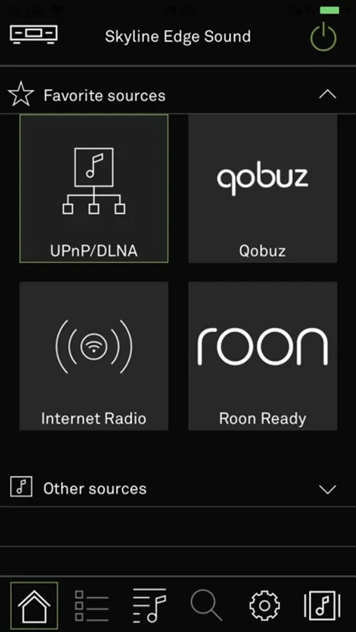 The app also displays information about the device status, the currently selected source and the media being played.