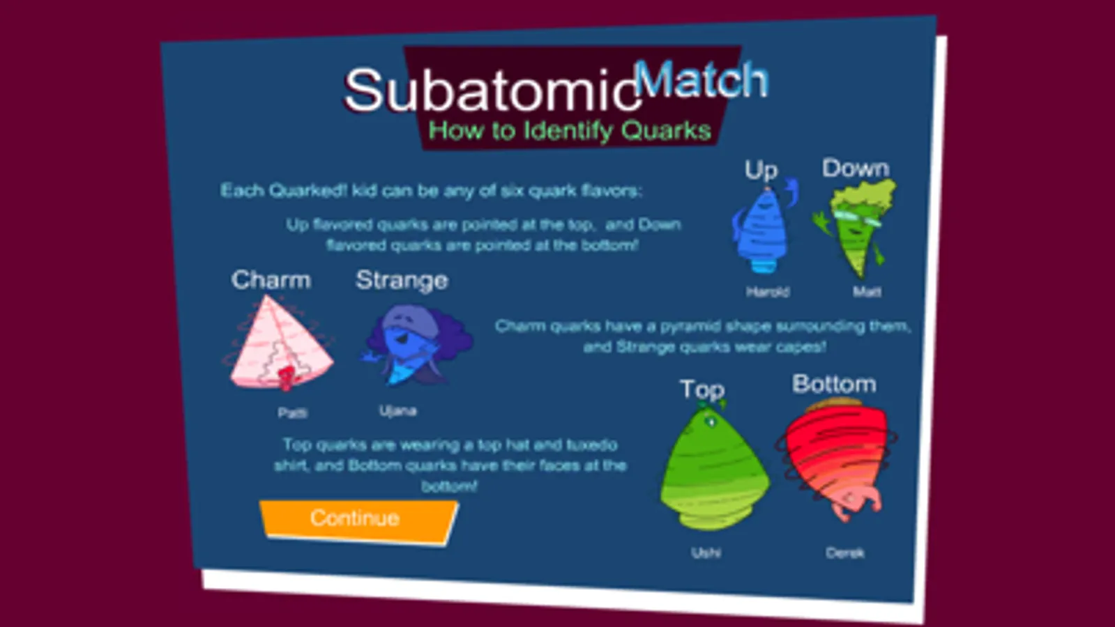 Match each of the different characters with their quark flavor alter egos! From the Quarked! Adventures in the Subatomic Universe project: www.quarked.org