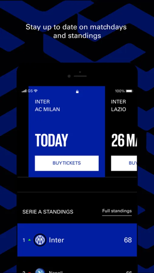 News, exclusive videos, the fixture list, table and live match reports. Thanks to the Nerazzurri app, you can buy tickets and all merchandise from the Official Store.