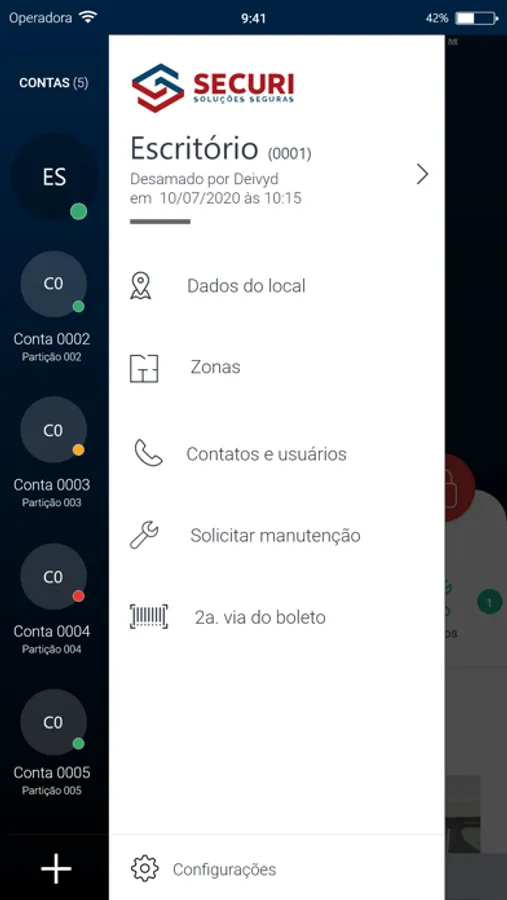 O Securi Mobile é um aplicativo móvel onde o cliente monitorado pode acompanhar diretamente via celular ou tablet todas as atividades do seu sistema de segurança. Por meio do aplicativo é possível saber o status do painel de alarme, armá-lo e desarmá-lo, visualizar as câmeras ao vivo, verificar eventos e ordens de serviço abertas e realizar chamadas telefônicas para contatos cadastrados no seu perfil. É a segurança que você precisa na palma da sua mão.
