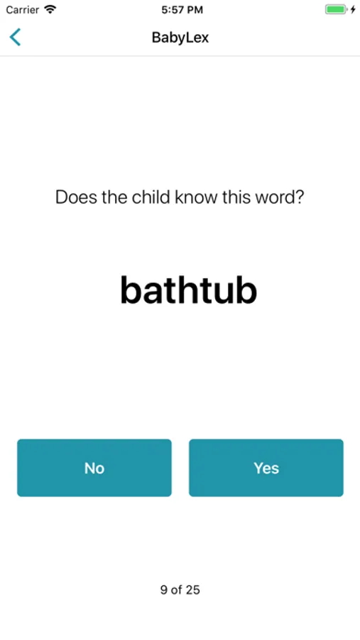 Don’t also worry if your child doesn’t say most of the words on the list – the words are chosen at random and are not tailored to the capabilities of particular age-groups. So, it is just as likely that your child knows all the words on the list or none of the words on the list depending on how old s/he is and what words were randomly chosen by the app to test. We will still be able to provide a reliable estimate of your child’s vocabulary.