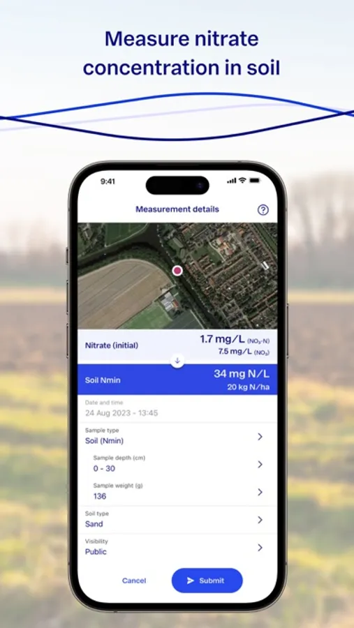 A simple and easy to use app for farmers, researchers and others who actively participate in research on the impact of agricultural practices on water quality. By taking measurements you can make better informed decisions, detect hot spots of nitrate losses and optimise agricultural practices.