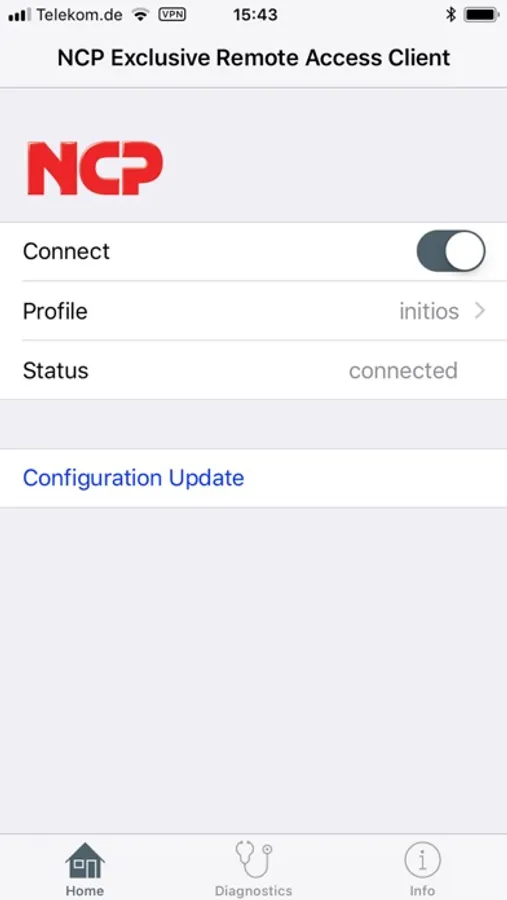 The NCP Exclusive Remote Access Client meets the highest demands on reliability, stability and security. With an unparalleled intuitive interface, professional end users benefit from seamless integration of the client with their Apple iPhone and iPad devices.