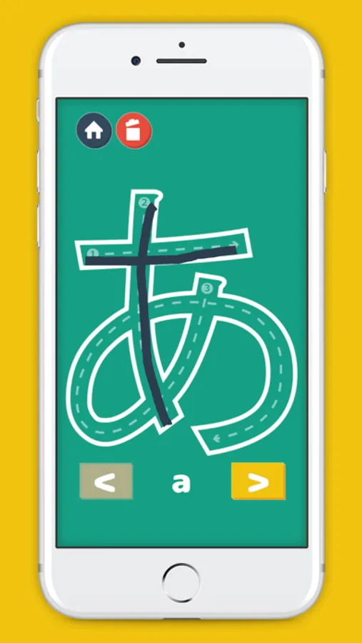 - Start drawing Japanese alphabet by touch the screen at the start point. (as you can see in the screen there is the number one image in there)
