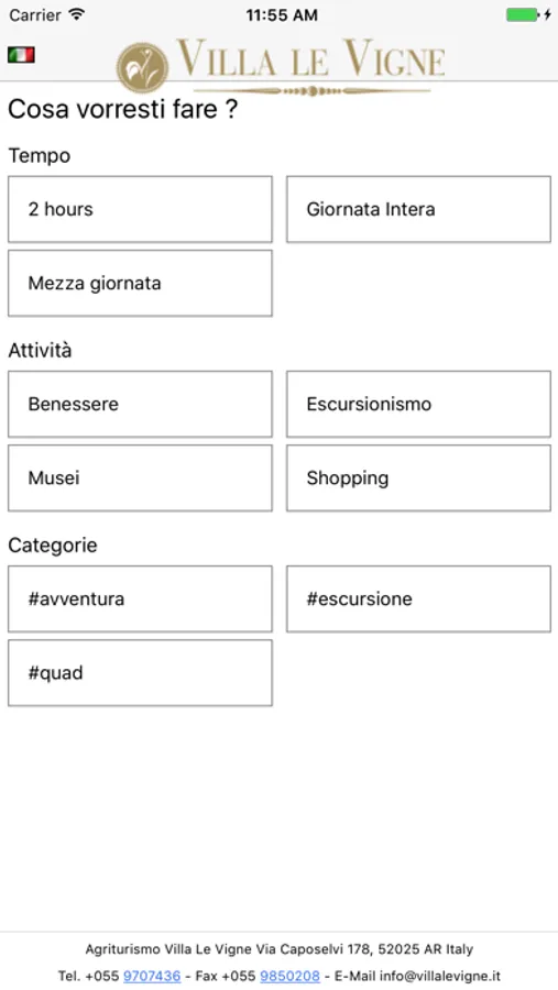 Scopri l'Agriturismo Villa Le Vigne e le attività che puoi fare in base ai tuoi interessi, il tempo a disposizione e la tipologia. Tramite l'APP avrai a disposizione tutte le informazioni utili per un piacevole soggiorno!