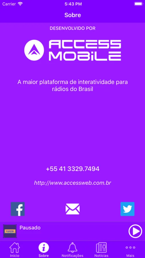 - Conversar com a Rádio através de um chat gratuito e ilimitado