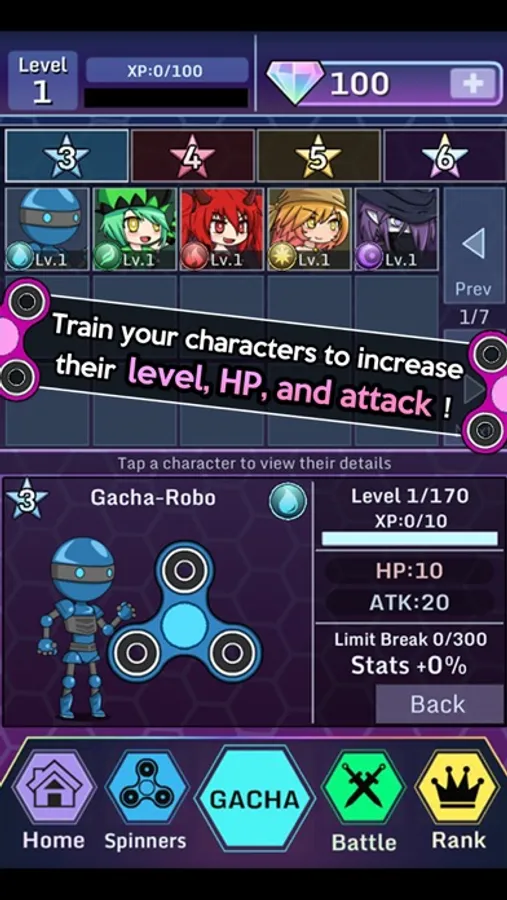 - Collect and Gacha 100 different anime characters and fidget spinners!