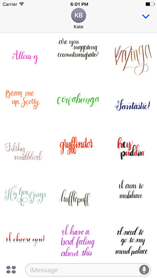 With the Take Heart Calligraphy Geek Sticker Pack, you can send beautiful and witty quotes from all of your favorite movies and TV shows to all your friends from within the iMessages app! This pack includes a variety of nerdy quotes that you can send to your friends when typing the words just isn't enough.