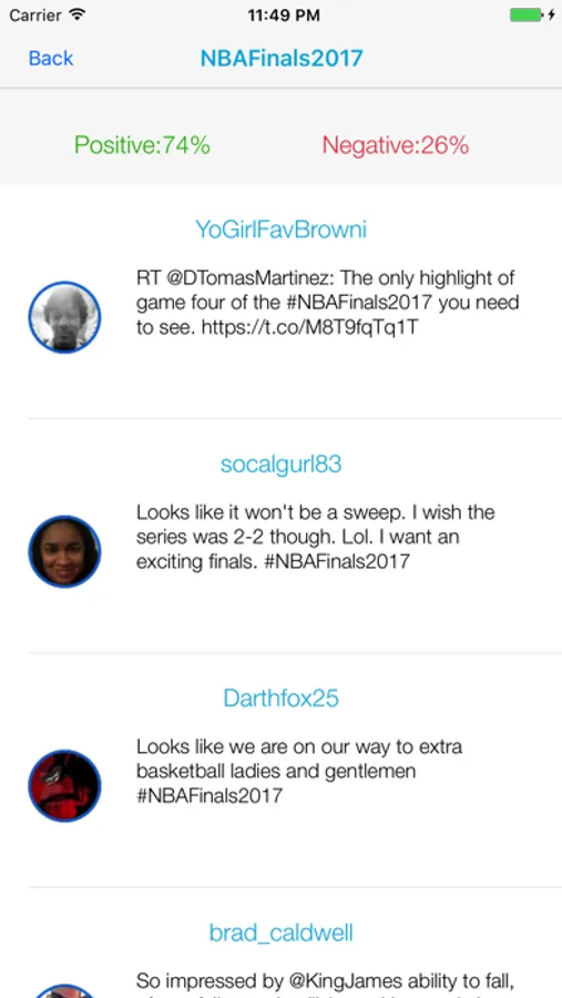 The results are presented in percentage of positive and negative tweets as well as the tweets analyzed.