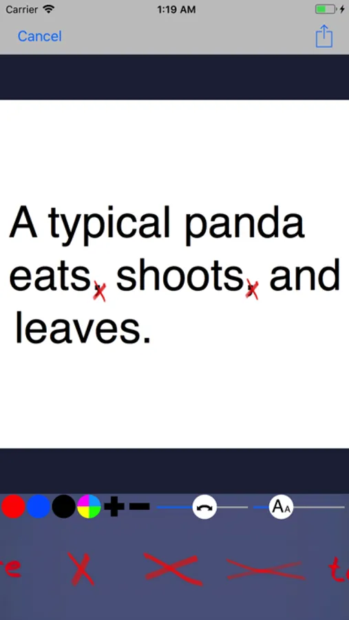 Add a little culture to your next message chat with Grammar Snob. You will have all the red corrections you need to fix typos or common grammar mistakes of your own or those of your friends. We also include #grammared to celebrate your mutual grammar enlightenment. Now in red, blue, or black colors and with highlighter marks.
