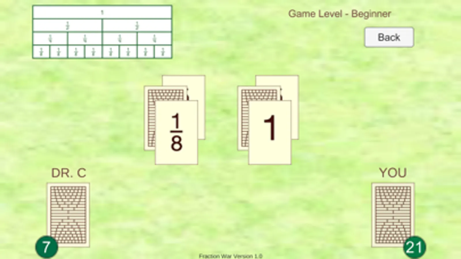 The winner is the player with all the cards at the end of the game. This game will provide hours of fun fraction practice.