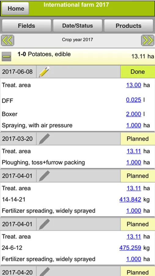 - Field Plan - you have the opportunity to see the actual field level but also switch between different harvests.
