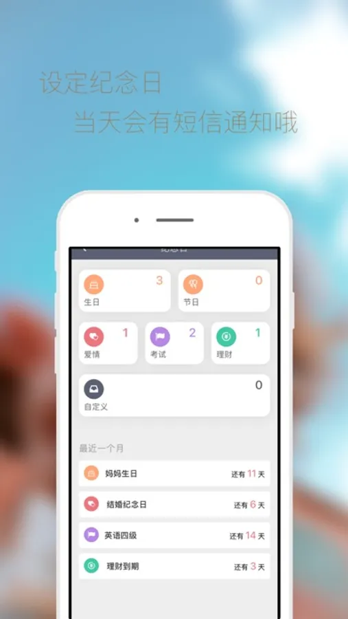 【纪念日】一个倒计时的纪念日,当天会短信提醒哦