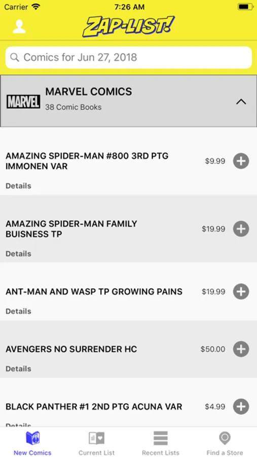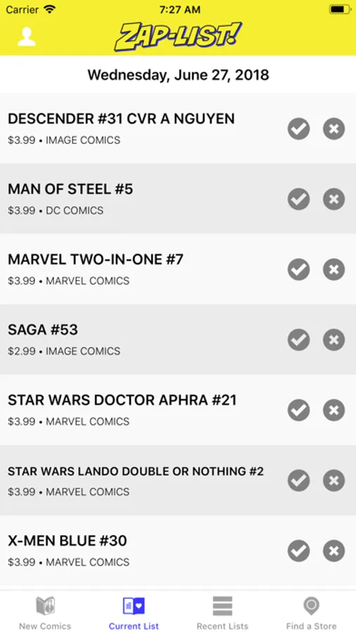 • Check off comic books as your purchase them, and view unpurchased comics from all past lists!