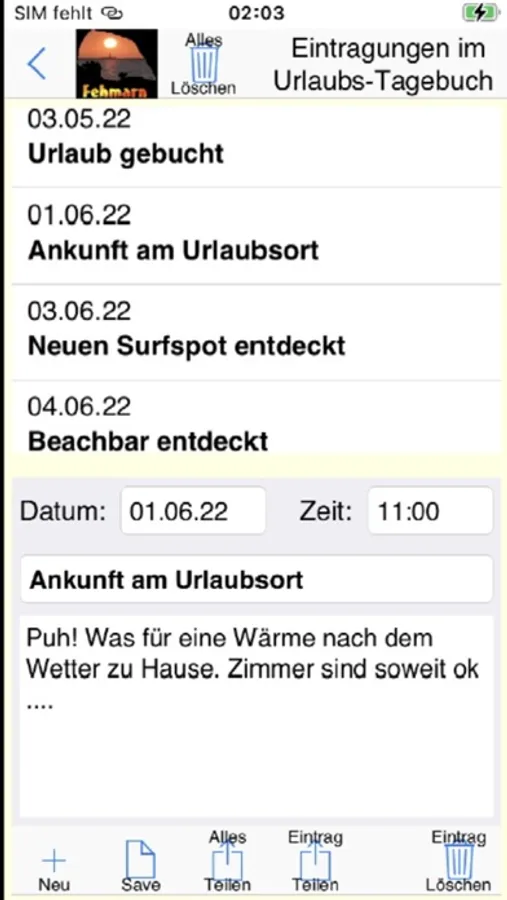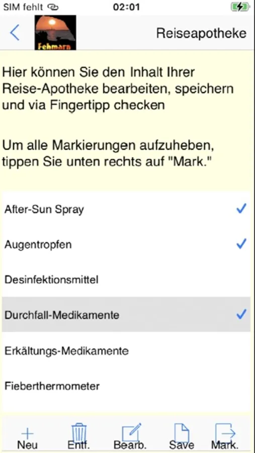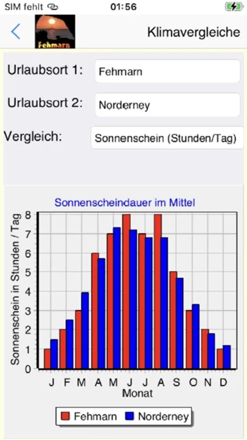 Die Fehmarn App und enthält u.a. Wetterstatistiken mit schönen Diagrammen z.B. zum Klimavergleich zweier Urlaubsorte. Außerdem bietet sie eine Reistagebuch und Reise-Checklisten für Ihre Reiseapotheke und Ihr Urlaubsgepäck, welche Sie auch selber verfeinern und im nächsten Urlaub wieder benutzen können. Weiterhin ist eine Sammlung von relevanten Webseiten für die Region vorhanden, sowie eine kleine Diashow und sie gibt Ihnen die Möglichkeit, alle Informationen, die für Ihren Aufenthalt auf Fehmarn oder für Sie als Fan von Fehmarn interessant sind, möglichst bequem im Internet abzurufen:
