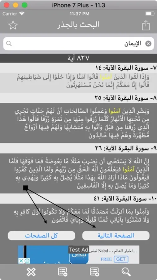 بعض الكلمات توجد لها نتائج كثيرة قد تتجاوز الألف آية فلا تعجل