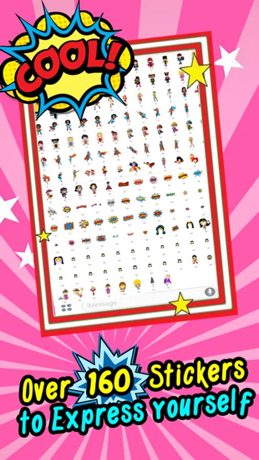 Express yourself in new ways with dynamic My Comic Hero Girl Stickers you can put anywhere in your chat. Scale, rotate, and layer stickers — even place them on photos you send and receive! Discover all our sticker packs in the iMessage App Store.