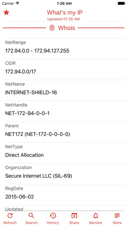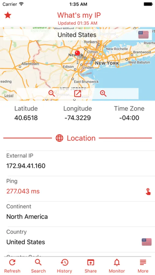 What is your IP address? Displays External Info (IPv4, GPS, Country, Locality, Time Zone), Local Info (Connection Type, Local IP4, Primary and Secondary DNS, Device Name), SIM Info (Carrier, Country, MCC, MNC, Access Technology), WHOIS, Traceroute and Ping to current or custom IP4.
