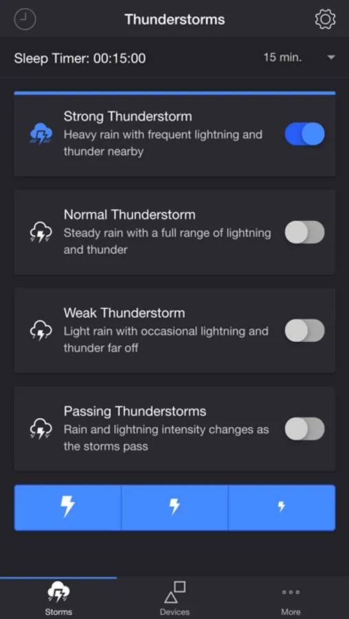 • Lightning on demand. Start a storm and tap one of the lightning buttons at the bottom of the page.