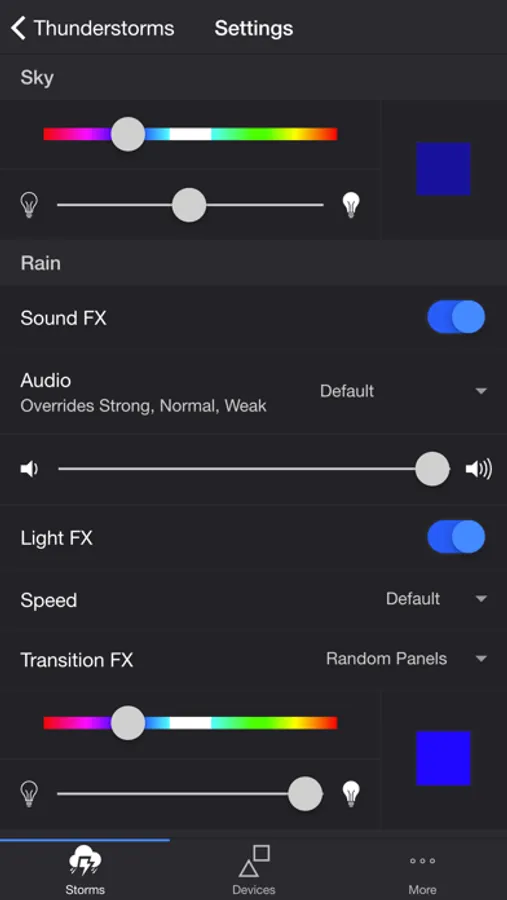 Summon a thunderstorm light show using your Nanoleaf panels. Watch your panels pulse and flash to the sounds of a storm.