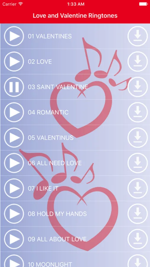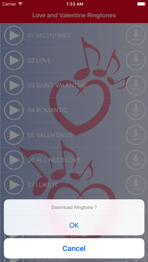 * Start the Love & Valentine Ringtones app