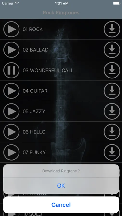 * Start the Rock Ringtones app