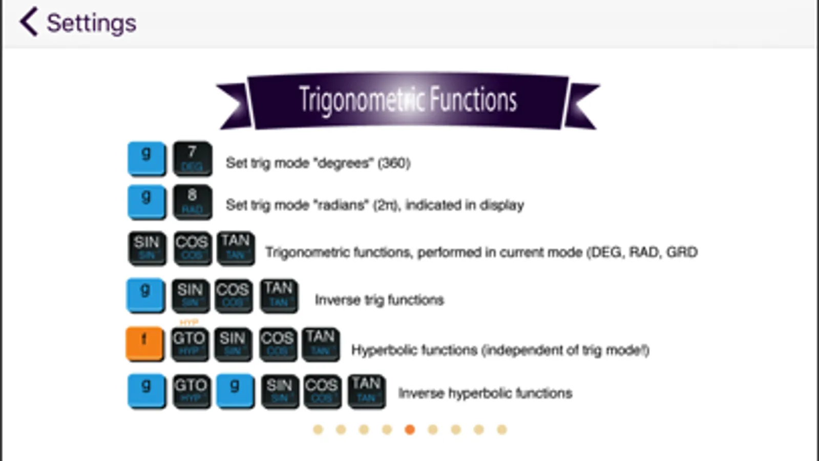 * Three trigonometric modes: DEGrees, RADians and GRADs.