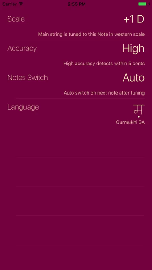 - Beginners might find hard to do a perfect tuning, so supports multiple accuracy ranges.