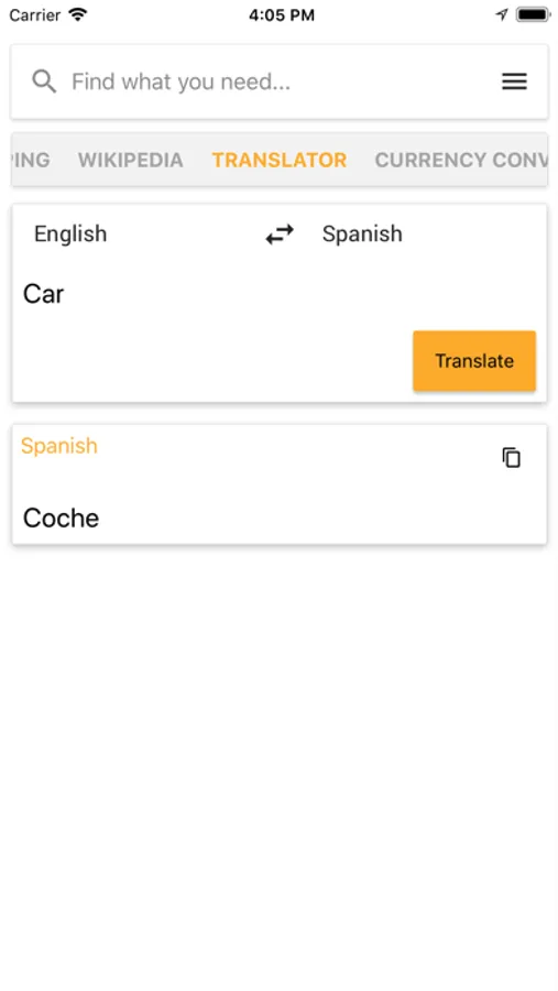 And finally, our Currency Converter will allow you to make currency translations directly in the app.