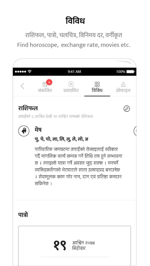 * Find horoscope, Nepali calendar, movies, exchange rate, classified etc.