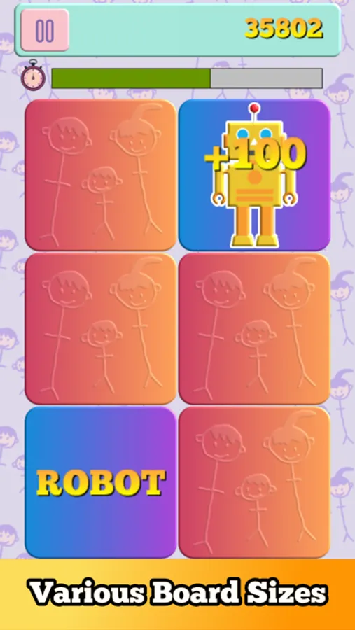 Flip over two cards and try to find a match between an English word and an image illustrated its meaning. There are 4 board sizes to suit your preferences. The smallest board size has only 6 cards. It's a good start for beginners. However, you can change to any other boards at any time to get more challenges. The more difficult level you play, the more score points your will get.