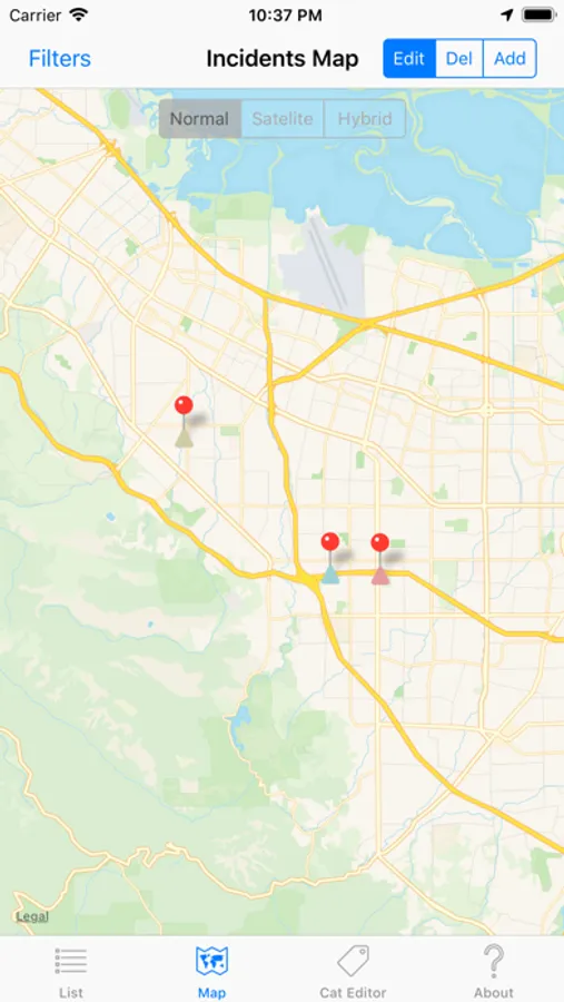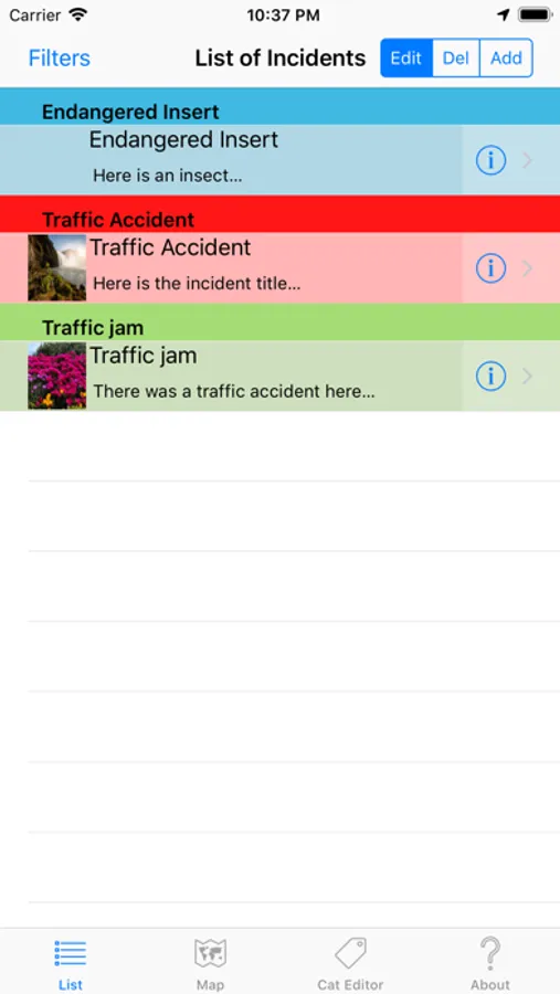 This application provides a private database of geographically located Incidents and a collection of associated photos, that can be created by the User