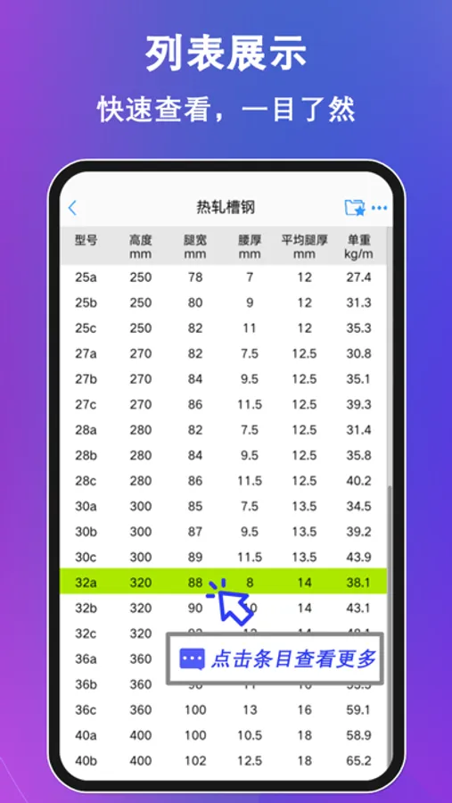 帮助工程师迅速查询型材几何尺寸和力学特性的工具类应用。
