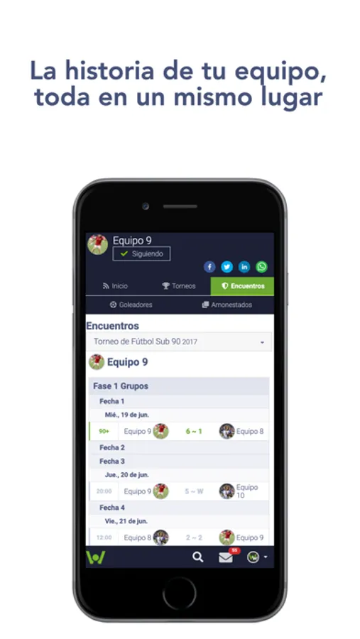 Queremos que puedas ver y compartir la información de tus torneos, tus equipos, tus encuentros y las instituciones con las que tienes una relación deportiva.