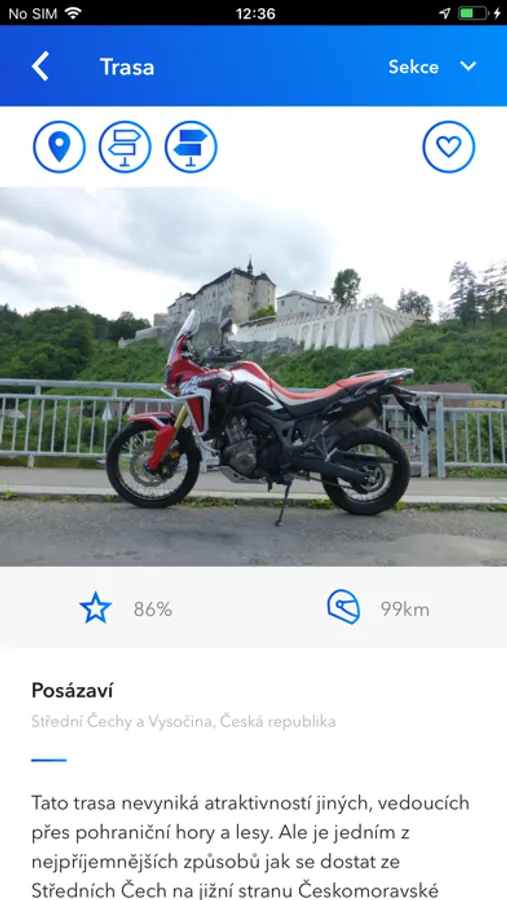 V tomto prvním vydání aplikace se soustředíme zejména na digitální podobu tras. V dalších pak budeme přidávat více funkcí zaměřených na motorkáře a organizaci vyjížďěk. Aktuální pokrytí trasami je: