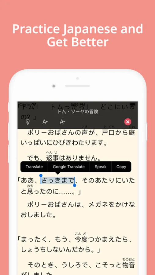 This app has both. It will help you to learn Japanese. It has 12 reading books in it. It will help you learn new Japanese words. It is easy to use. Reading experience developed to be the best.