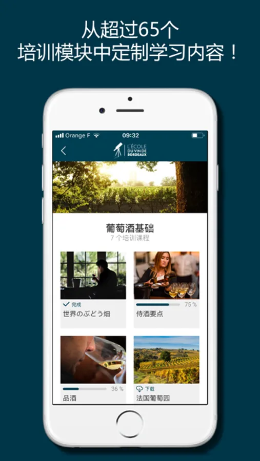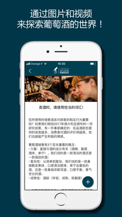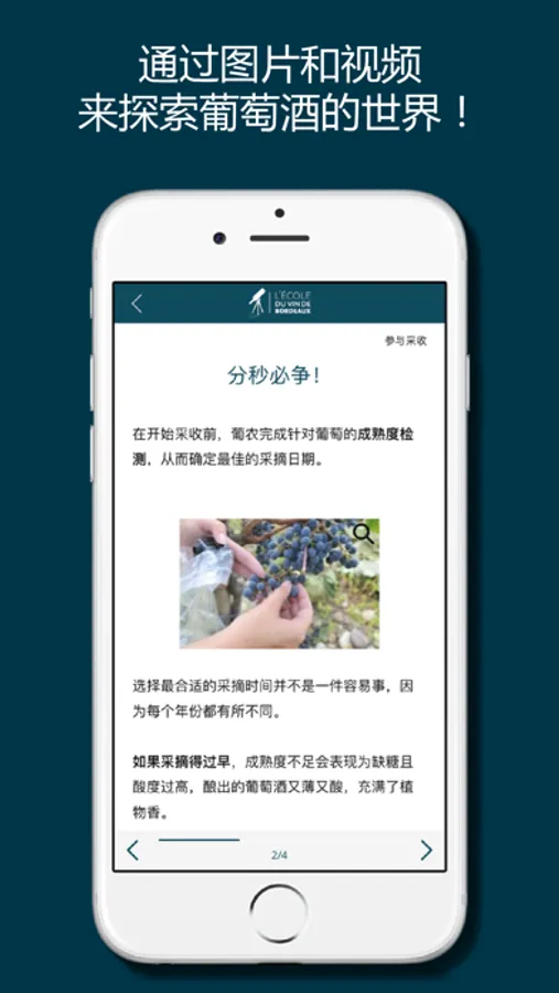 探索葡萄园和葡萄酒的精彩世界,下载首个为专业人士(侍酒师、超市货架主管、葡萄酒专营店主、葡萄酒贸易商……)量身定制的葡萄酒培训应用。