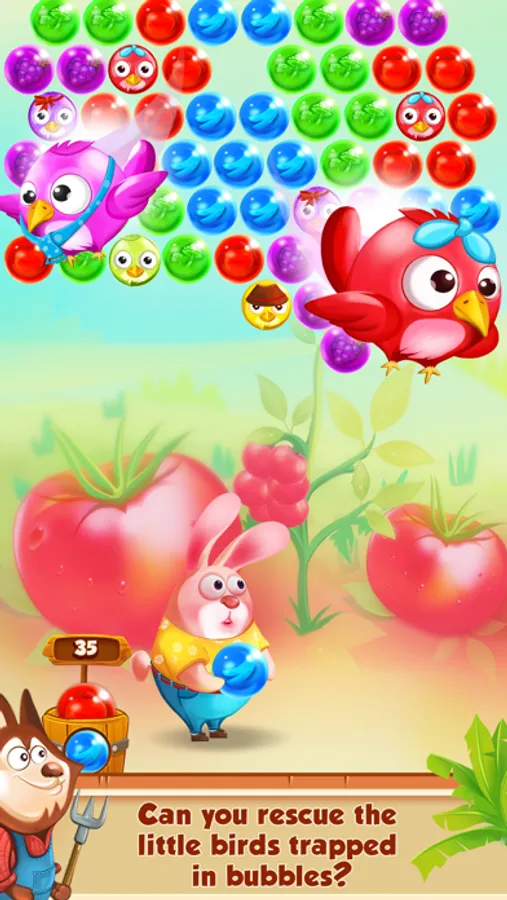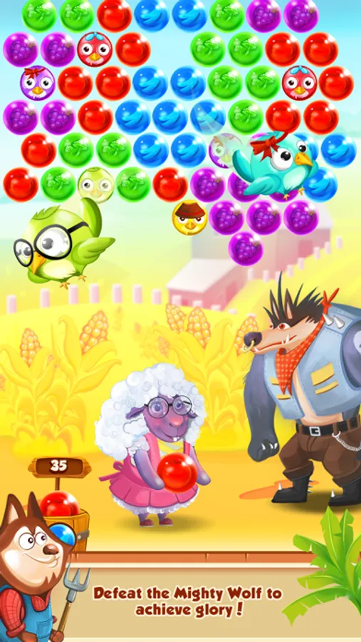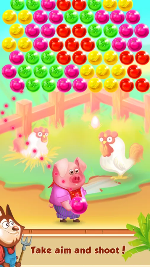 Farmland is a cute world of animals and birds. Aim, match three colorful balls and deep dive into the popping ocean with fun of bursting-colored bubbles. Play as Rodger the dog, Suzy the Sheep and Randy the Horse and rescue cute little birds from evil wolf in this epic bubble shooter game. Experience farming and bubble shooter in apple farms, wheat farms corn farms and more in Bubble Farmer! This is the best free bubble shooter experience on mobile. Hone your bubble shooter skills in this challenging farm themed bubble shooter and be the ultimate champion!