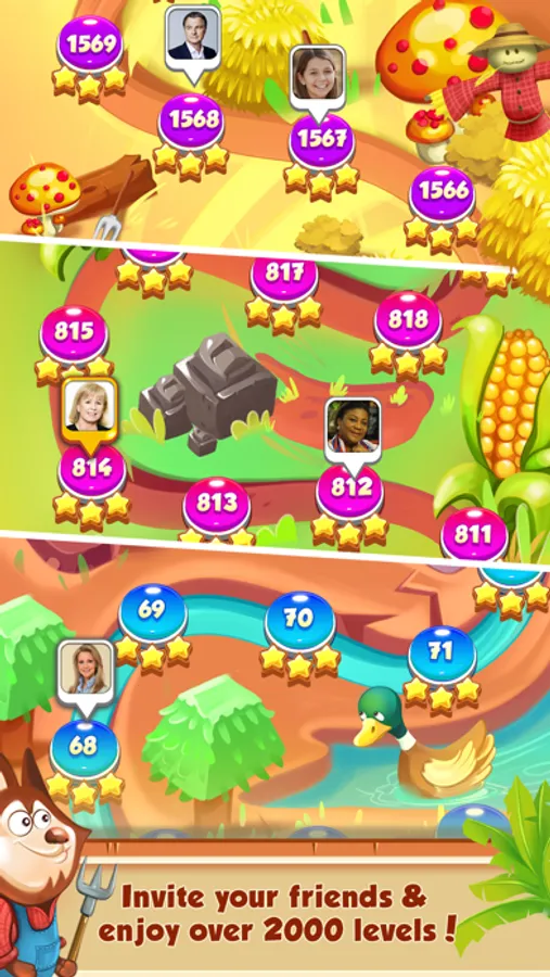 When you think you are alone in the fields, connect to Facebook and invite all your friends to your bubble shooter adventure and explore the farmlands with them. Enjoy more than 10K+ levels and surround yourselves with magical bubbles waiting for you to pop them. The levels in the games have been designed to give a classic and brain-teasing shooting experience to the players. Happy bubble shooting!