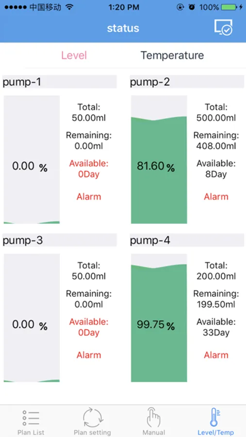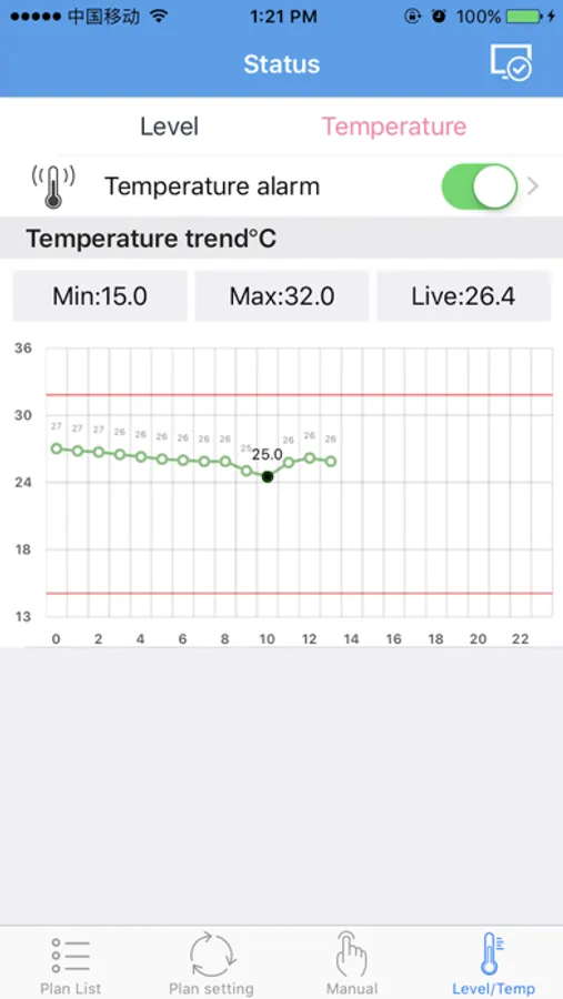 This application is used to control Kamoer X4 dosing pump, dedicated to Aquarium breeding, application contains four modules, 1.Temperature display modules,you can set the temperature alarm threshold in this module,when the dosing pump temperature exceeds the alert thresholds,dosing pump will make warning sounds, this module can display real-time temperature and time the temperature of the last 24 hours;