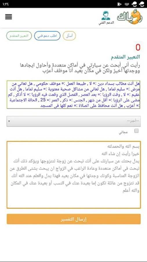 يمكن للرائي إرسال الرؤيا والحصول على تعبيرها قبل أن يدفع أي رسوم ثم بعد ذلك يدفع رسوم استخدام التطبيق بعد أن يرى تعبير الرؤيا