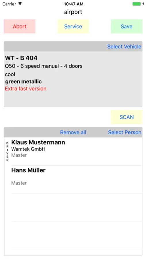 Diese App ermöglicht Ihnen auf Veranstaltungen mit Hilfe eines Barcodescanneraufsatzes Personen an verschiedenen Standorten Testfahrzeuge/Teamfahrzeuge zu vergeben