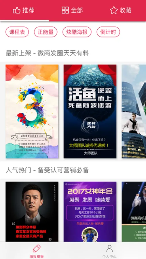 海报大师是化妆品行业微商的宣传海报制作神器,各种海报模板均由化妆品行业资深UI设计团队创意与制作,可满足微商在朋友圈宣传时的海报需求;各种朋友圈文案海报热 点,支持一键转发,让你轻松玩转朋友圈!