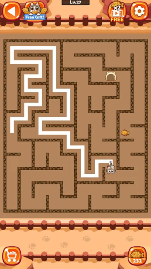 Clear more than 2,000 dynamic mazes with Rookie the cat!